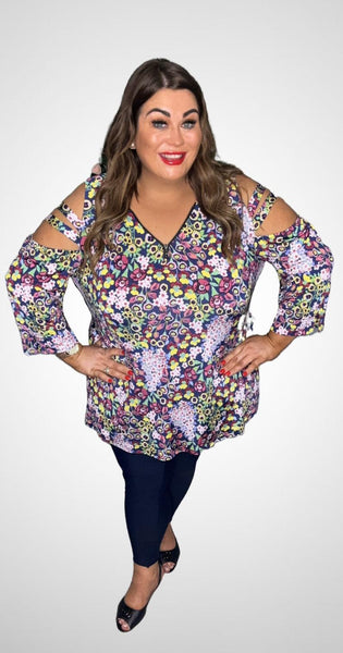Zip detail on the chest Cold shoulder detail on arms V neck All year round piece  Dress it up with one of our fabulous blazers  Smaller fit - If in between ie 22-24 go for...