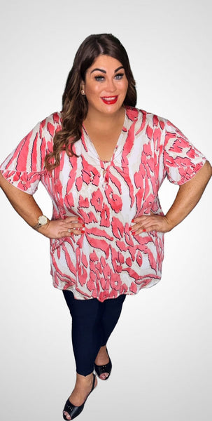 Low V neck Coral tunic - Ideal with leggings or jeans Sized